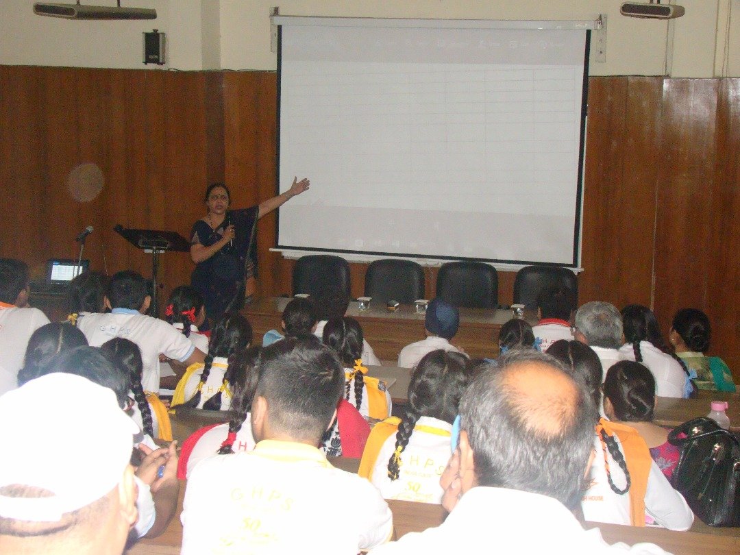 On the occasion of World Science day, the students of class XI and XII Science stream attended the popular science lectures delivered by esteem professors from All India Institutes of medical science organised by National Science center on 10 and 11 Nov 2014. In two sessions the topics were Crystallography : Impact on the World by Prof. Puneet Kaur and The eye normal function and common disorders by Dr.Yog Raj Sharma , Chief Dr. R.P centre for Ophthalmic Science (AIIMS)