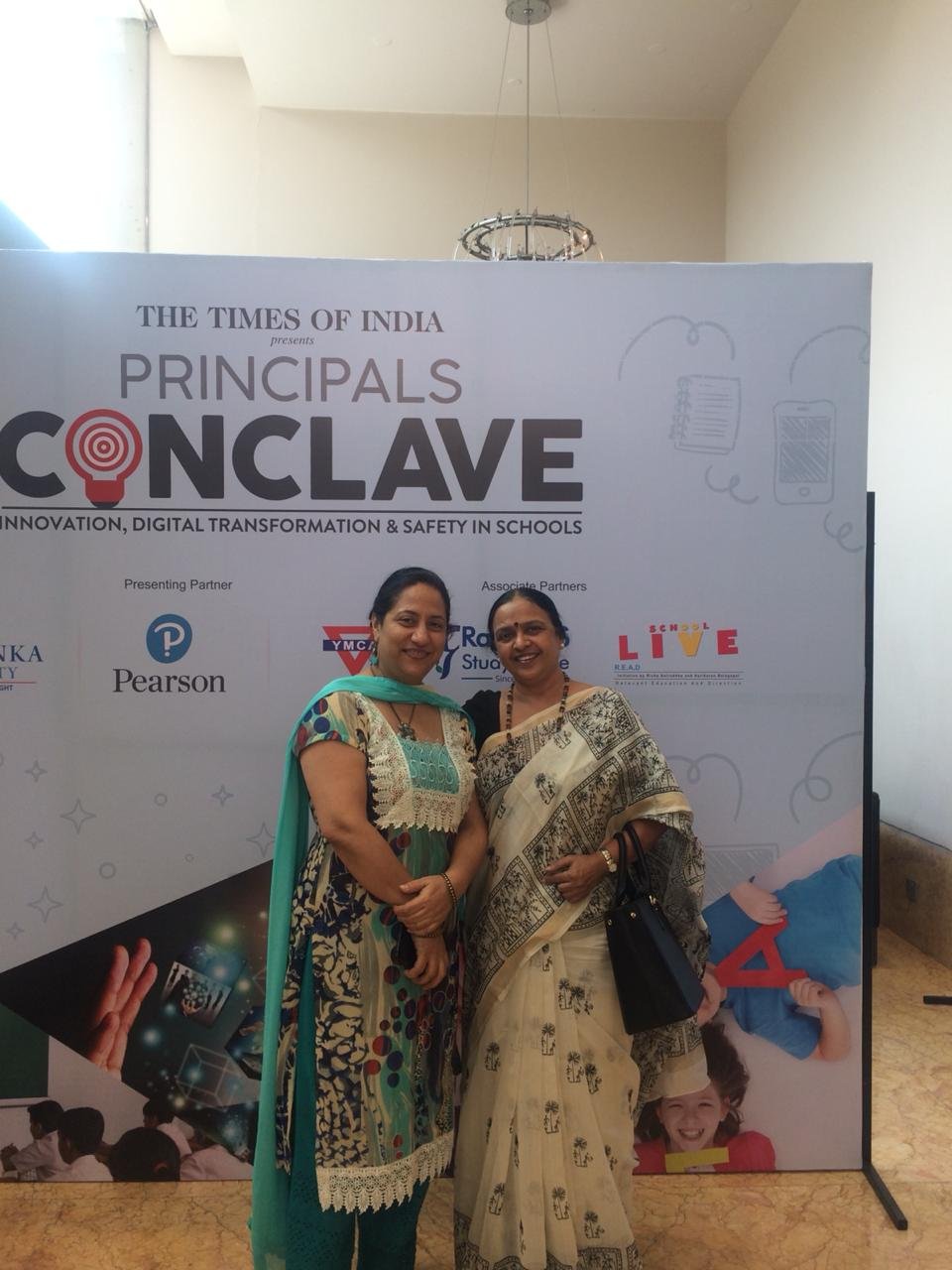 The fifth edition of Principals' Conclave, a one day conference was orgainsed by The Times of India. It was held to explore ways in which heads of educational institutions, policy makers and thought leaders could create a conducive environment for safe and effective teaching and learning. They emphasised on the best practices to re-energize the Indian Education System by creating the right leadership model. The Conclave was attended by the school principal Ms D.K. Dhingra on 20 Sept 2018 held at The Lalit, New Delhi
